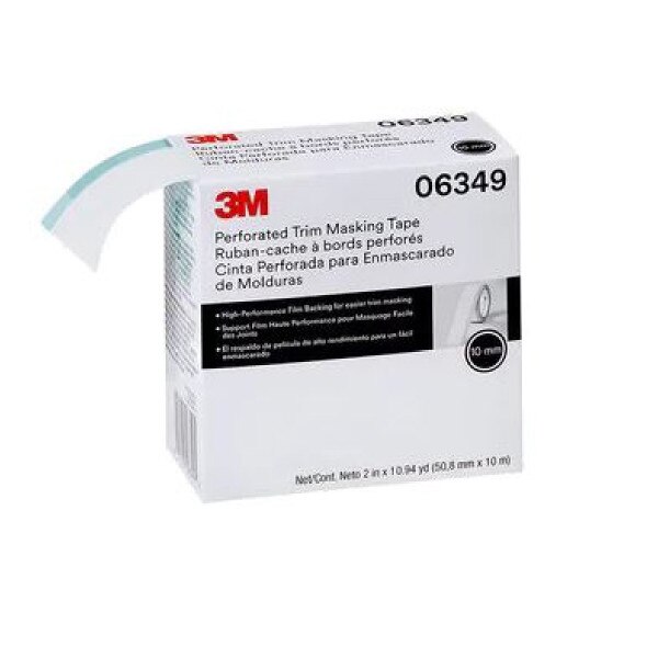 3M™ Perforated Trim Masking Tape features a rigid band along one edge that slips gently behind moldings, lifting them slightly from the body. This tape allows paint to flow beneath the moldings while masking their exteriors for a professional, finished paint job without removing or replacing the moldings or rework for paint lines. Perforations allow you to tear the tape by hand, saving time.