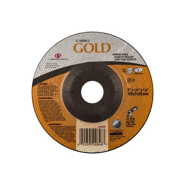 These Type-27 Carbo Gold Aluminum Oxide Grinding Wheels feature advanced resin bond, exceptional balance and a unique glass cloth reinforcement design. Benefits include fast stock removal, no vibration, no burning of workpiece and no fraying or spalling of abrasive grit.