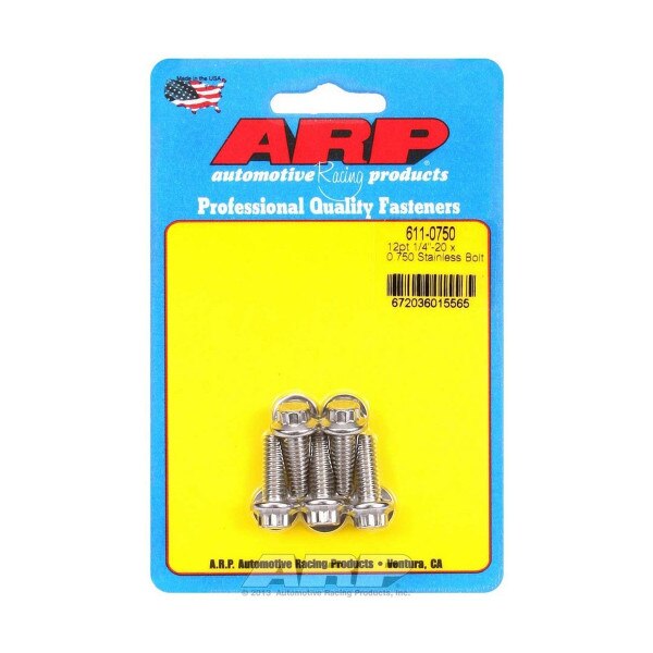 ARP Bolt, 1/4"-20 Thread, 0.750" Length, 12-Point Head, Stainless, Polished, Set of 5