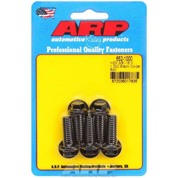 ARP Bolt, 3/8"-16 Thread, 1.000" Length, Hex Head, Chromoly, Black Oxide, Set of 5