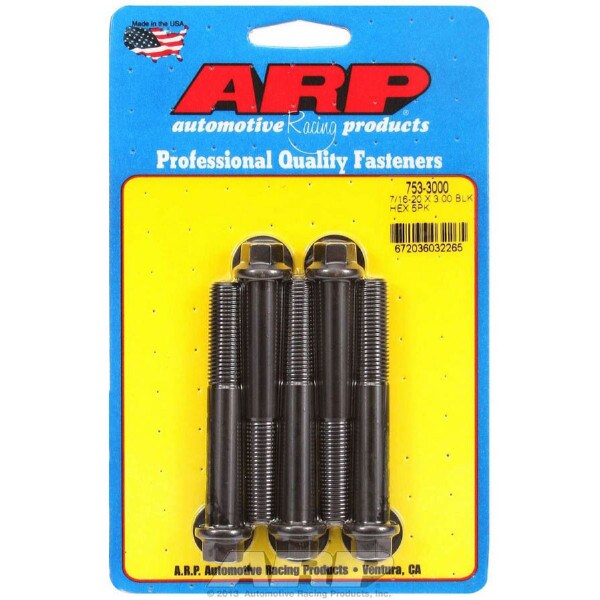 ARP Bolt, 7/16"-20 Thread, 3.000" Length, Hex Head, Chromoly, Black Oxide, Set of 5