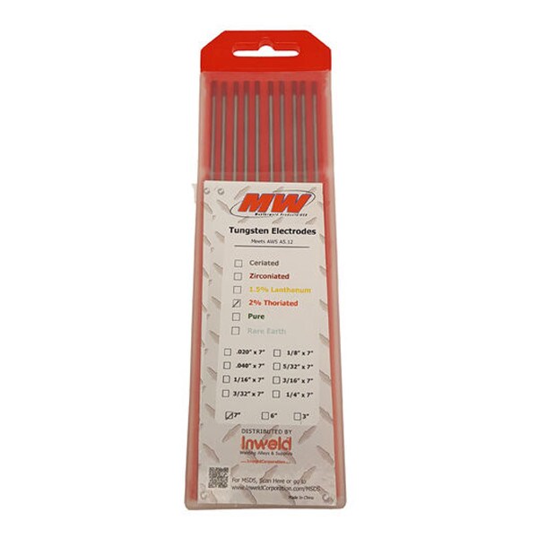 Masterweld Tungsten Electrodes, 2% Thoriated (Red Tip), Set of 10